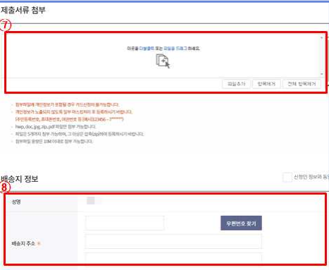 7과 6의 지원대상 선택시 파일첨부할 수 있습니다.