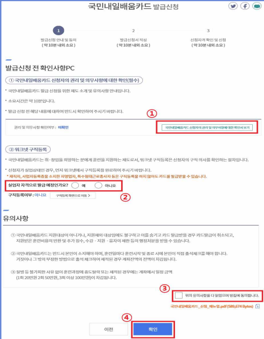 모바일 국민내일 배움 카드 신청