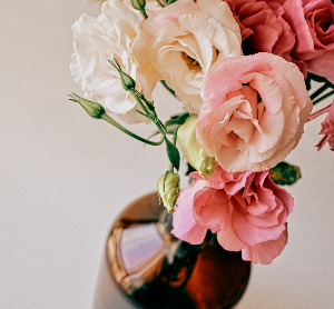 사진상 보이는 것은 대표적인 리시안셔스 로즈 품종이며 흰색 핑크 복색입니다.
