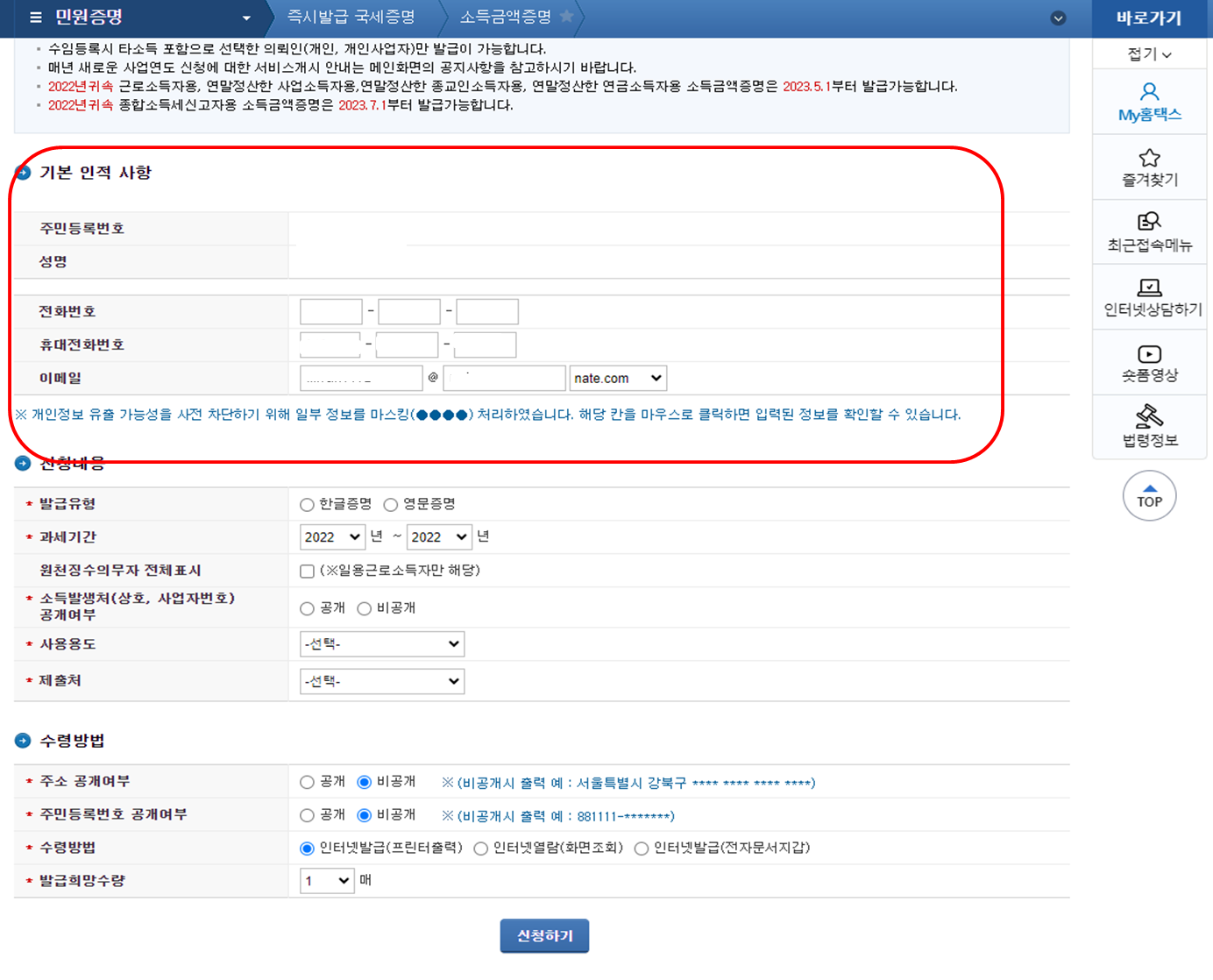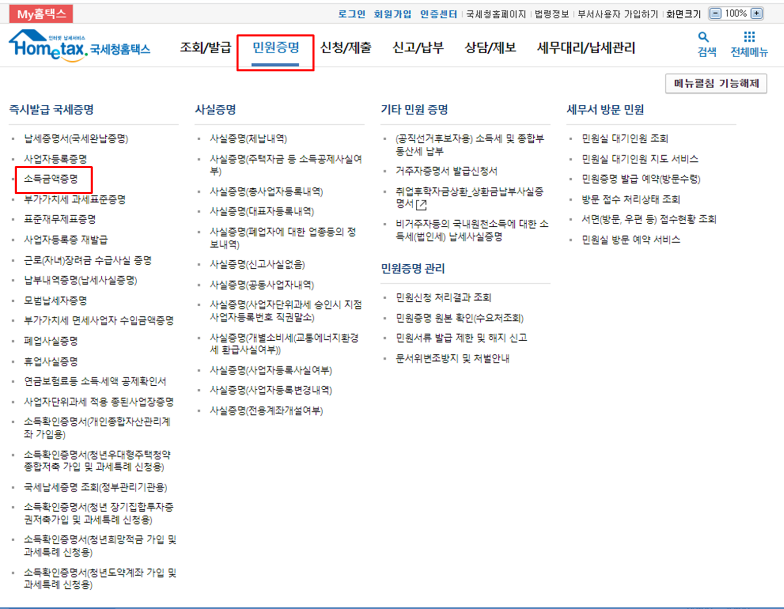 소득금액증명원 발급방법