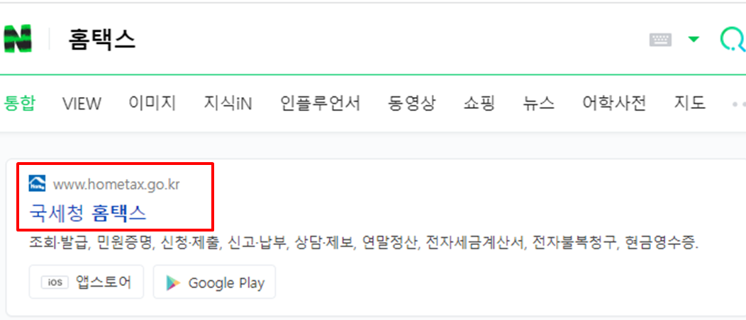 검색창에 홈택스를 검색하여 들어가시면 홈택스 메인화면이 나옵니다.