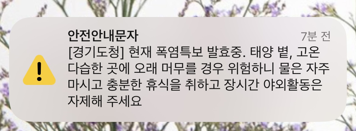 마침 너무 더워서 안전안내문자가 온것을 캡처해서 올려봅니다.