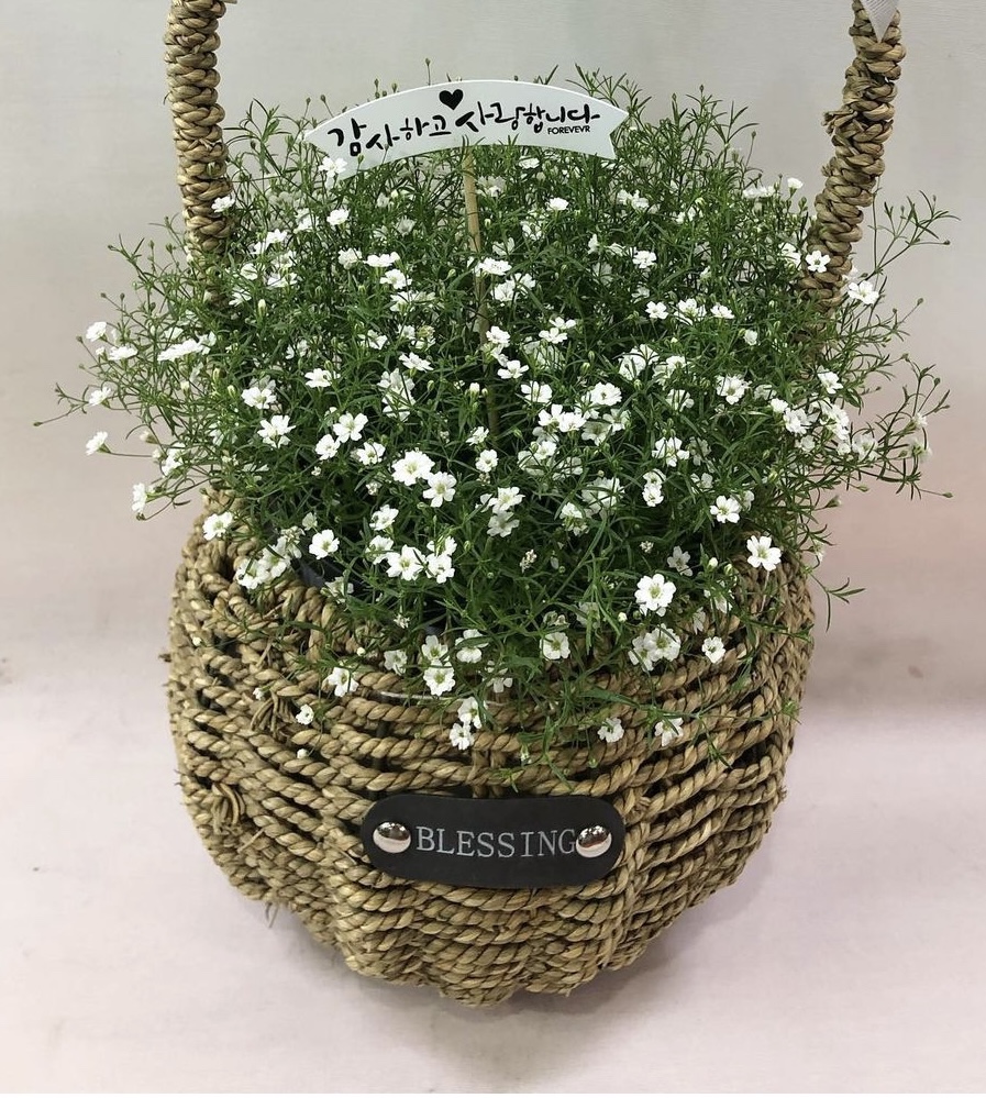 하지만 물주기를 잘 해야 하는데요. 꽃에 물이 닿으면 금방 시들고 그 줄기가 과습으로인해 죽어버리기 쉽습니다. 처음에 화원에서 가지고 올 때는 풍성하고 예쁜데 물 준 곳이 구멍이 생긴다면 물주기를 잘못한 것입니다. 안개꽃은 저면관수가 좋습니다.