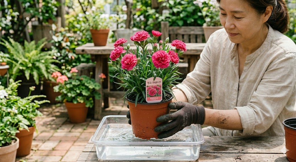 카네이션은 흙이 완전히 마른 후 물을 주는 것이 중요합니다.