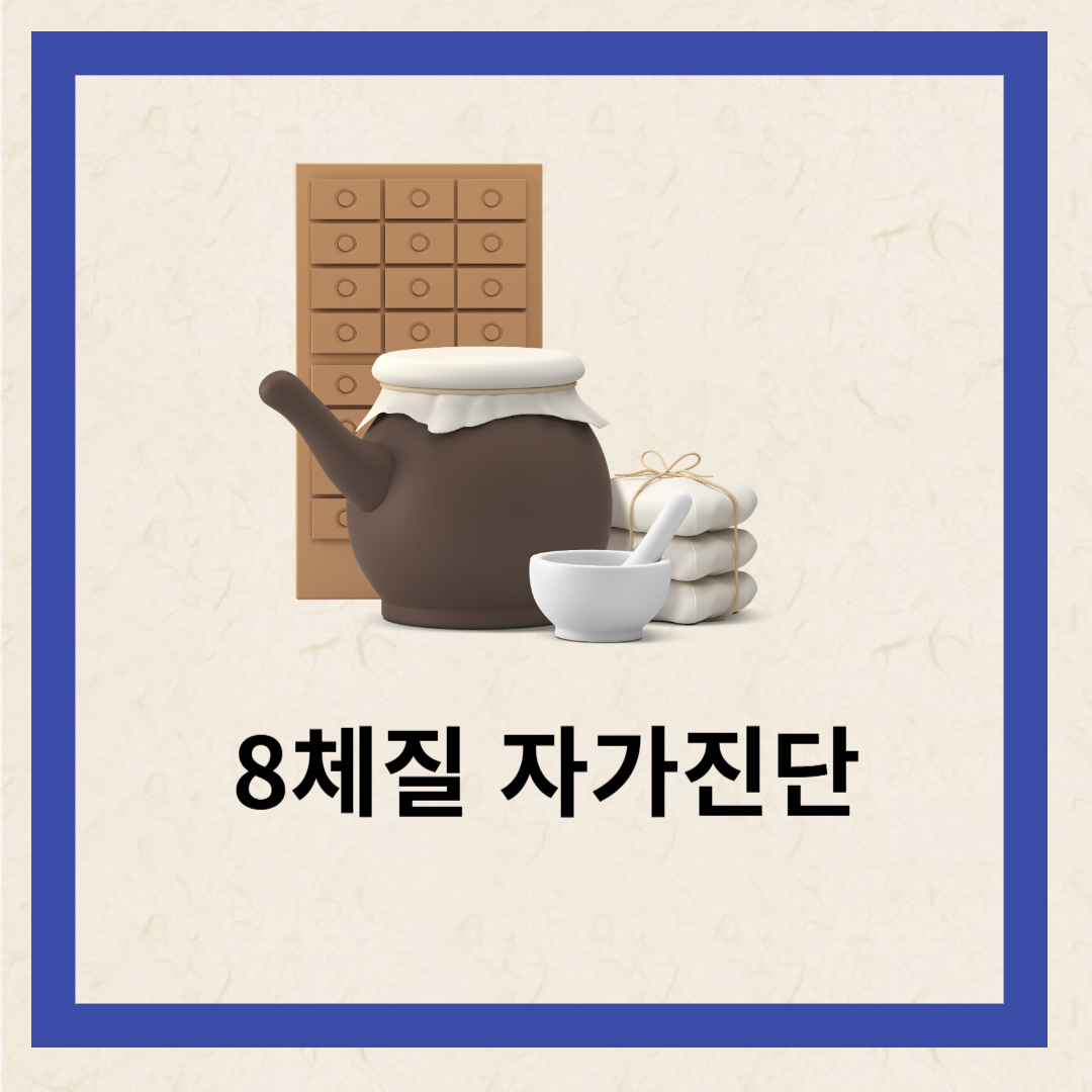 8체질 자가진단 테스트를 통해 자신의 체질을 확인하고 , 그에 맞는 생활습관과